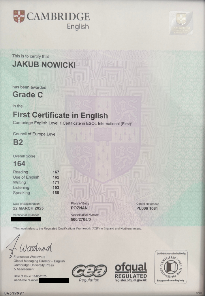 Korepetycje z Jakubem Nowickim (certyfikat FCE Cambridge)